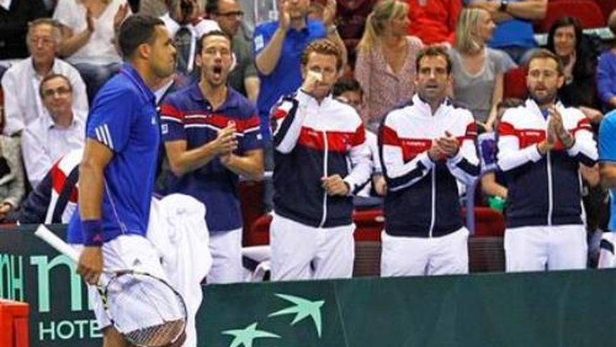 GINEBRA (AP) -- Roger Federer consiguió el domingo el punto decisivo que catapultó a Suiza a las semifinales de la Copa Davis por primera vez en 11 años. Federer despachó 7-6 (0), 6-2, 6-3 Andrey Golubev para certificar la victoria 3-2 sobre Kazajistán, una de las tres eliminatorias de cuartos de final en las que los equipos locales revirtieron 2-1 adversos al emprender la jornada dominical. Francia e Italia hicieron otro tanto para superar Alemania y Gran Bretaña, respectivamente. Suiza, que nunca ha conquistado la Ensaladera de Plata, recibirá a Italia en su semifinal a disputarse en septiembre. La República Checa, campeón de las últimas dos ediciones y que barrió 5-0 a Japón, será anfitriona de Francia en la otra semifinal. Abajo 2-1 tras perder el duelo de dobles el sábado, Suiza le dio la vuelta cuando Stanislas Wawrinka, el campeón del Abierto de Australia, derrotó a Mikhail Kukushkin por 6-7 (4), 6-4, 6-4, 6-4. La última vez que los suizos alcanzaron la semifinal fue en 2003. Entonces, con Federer al frente, el equipo sucumbió ante la Australia de Lleyton Hewitt"s Australia. Francia, por su parte, completó su remontada tras perder los dos puntos de individuales el viernes. Primero, Jo-Wilfried Tsonga superó 6-3, 6-2, 6-4 a Tobias Kamke para igualar la serie, y Gael Monfils aseguró el punto de la victoria al derrotar 6-1, 7-6 (0), 6-2 a Peter Gojowczyk. El viernes, Kamke superó 7-6 (8), 6-3, 6-2 a Julien Benneteau y Gojowczyk venció 5-7, 7-6 (3), 3-6, 7-6 (8), 8-6 a Tsonga. El sábado, Michael Llodra y Benneteau derrotaron 6-1, 7-6 (5), 4-6, 7-5 en dobles a Kamke y Andre Begemann para recortar a 2-1 la ventaja. En la arcilla de Nápoles, Italia ganó en sets corridos sus duelos de singles del domingo contra Gran Bretaña para alcanzar las semifinales por primera vez en 16 años. Fabio Fognini venció sorpresivamente 6-3, 6-3, 6-4 a Andy Murray, ganador de dos títulos Grand Slams, para igualar 2-2 la serie, y Andreas Seppi venció 6-4, 6-3, 6-4 a James Ward en el partido decisivo.