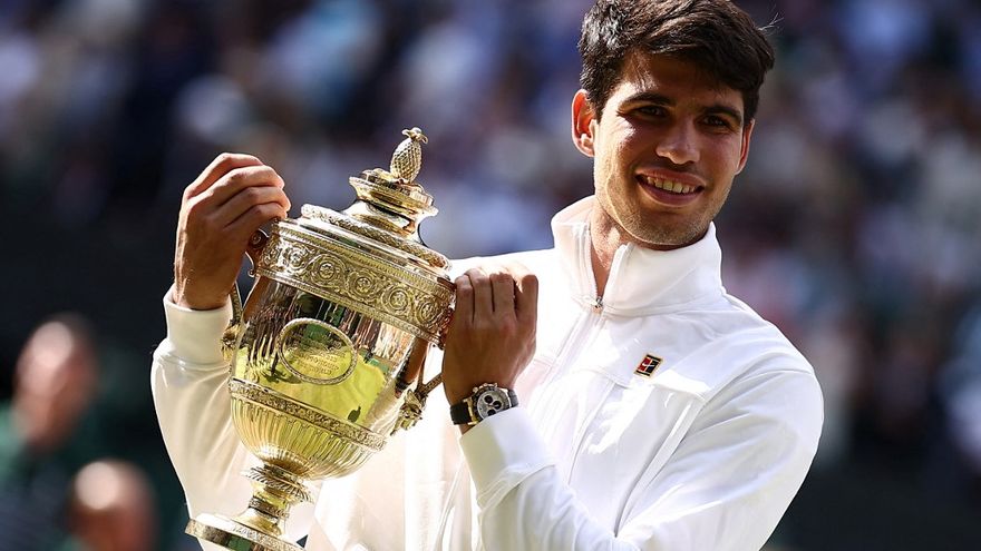 El triunfo en Wimbledon permitió a Alcaraz igualar el número de victorias en el torneo londinense de su compatriota Rafael Nadal, ganador del trofeo en 2008 y 2010.