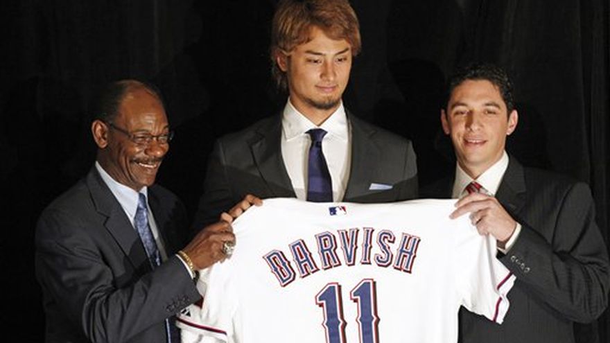 Los Rangers de Texas presentaron la noche del viernes a su nuevo lanzador, el japonés Yu Darvish, en una conferencia de prensa que se transmitió en vivo en la televisión de su país, donde ya era de mañana. Darvish se estiró para ver la espalda de su camiseta de los Rangers de Texas, con su nombre y el número 11. Miró hacia arriba y sonrió. "Emocionado, así es como me siento ahora", dijo Darvish mediante un intérprete. "Simplemente emocionado por lo que viene". El mejor lanzador japonés es ya miembro oficial del dos veces campeón defensor de la Liga Americana, con una presentación formal en el estadio Rangers Ballpark luego de acordar un contrato de seis años que le garantiza 56 millones de dólares. Darvish posó con el piloto Ron Washington y el gerente general Jon Daniel. Darvish dijo que los Rangers lo hicieron sentir en familia cuando visitó Texas por primera vez hace dos semanas y que su pasión le hizo identificarse con el equipo. El lanzador de 25 años, que se destacó en la Liga del Pacífico japonesa las pasadas siete temporadas, dijo que no estaba preparado para hablar sobre motivos específicos por los cuales decidió moverse a Estados Unidos en este momento. Sin embargo, dijo que no sentía presión y planeaba mantener una mente abierta y relajarse con su nuevo equipo y en un país diferente. "No tengo preocupaciones", dijo. "Lo que espero es un ambiente diferente, una liga diferente y bateadores diferentes. Estoy ansioso por ello con mucha emoción". Los Rangers pasaron más de dos años siguiendo a Darvish y conociéndolo personalmente antes de comprometer más de 107 millones de dólares para conseguirlo. Además del contrato, Texas debe pagar 51.703.411 dólares al equipo de Darvish en Japón.