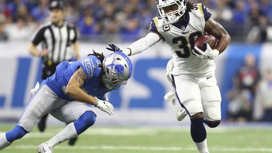 Todd Gurley corrió para 132 yardas y dos anotaciones y los Rams de Los Ángeles superaron a domicilio 16-30 a los Lions de Detroit para acreditarse el título de la División Oeste de la Conferencia Nacional por segunda temporada consecutiva.