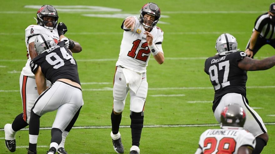 El veterano Tom Brady, mariscal de campo de los Tampa Bay Buccaneers, consiguió este domingo cuatro pases de touchdown en la victoria ante Las Vegas Raiders, con los que superó el récord histórico de la liga de football americano (NFL) en poder de Drew Brees.