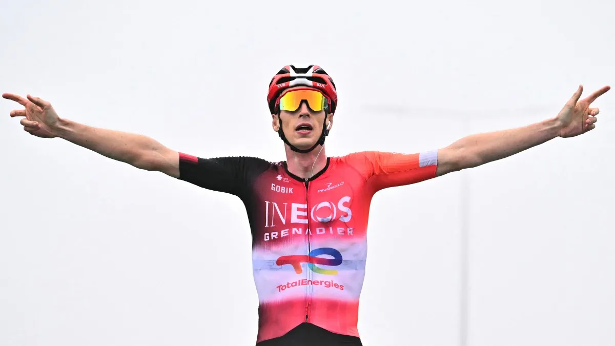 Presente en la escapada formada en las primeras rampas del Tourmalet, primera de las cuatro dificultades montañosas del día, el escalador de la formación Ineos-Grenadiers de 25 años se quedó solo en el Peyresourde, y resistió la llegada de los favoritos en Superbagnères.
