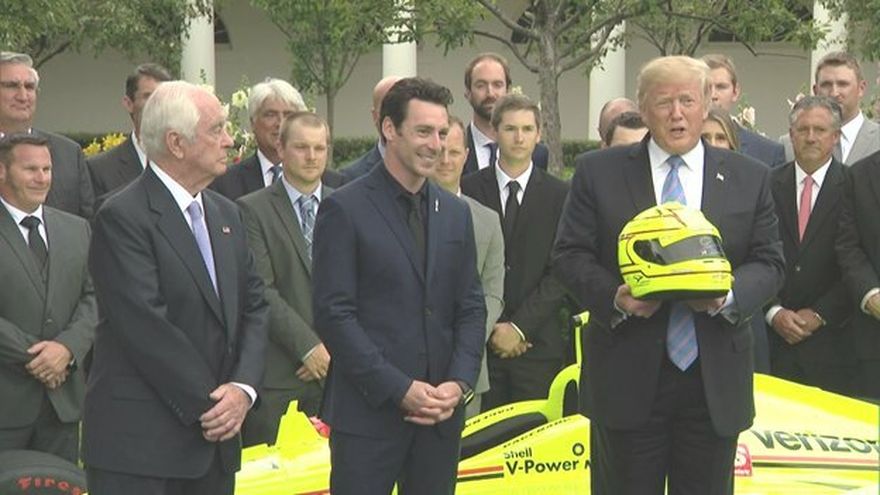 "Sé que es difícil ganar las 500 Millas de Indianápolis. Yo no lo haré (...) De hecho, a lo mejor lo hago para tener esta copa", dijo Trump en los jardines de la Casa Blanca, junto al piloto y a Roger Penske, el propietario de la escudería que lleva su nombre.
