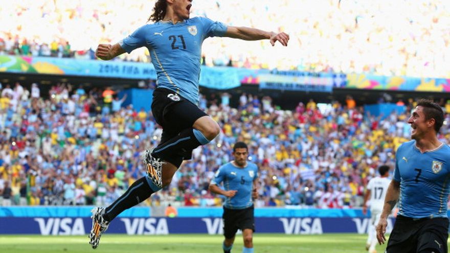 Sin Luis Suárez pero con un certero Edinson Cavani a la hora de convertir un penal, Uruguay aventaja 1-0 a Costa Rica después de 45 minutos en la apertura del competido Grupo D en la Copa del Mundo. El artillero del Paris Saint-Germain anotó a los 22 minutos, luego de que Diego Forlán centró al área un tiro libre y el defensor tico Junior Díaz derribó en el forcejeó al capitán charrúa Diego Lugano. Después de los reclamos de los costarricenses al juez alemán Felix Brych, Cavani cobró fuerte y bajo a la derecha para superar al portero Keylor Navas. Hasta ese momento el ataque uruguayo, que no contó con su astro Suárez, no había conseguido descifrar el esquema de cinco defensas que planteó el seleccionador de Costa Rica Jorge Luis Pinto. El partido comenzó trabado, con muchas interrupciones en el mediocampo. Joel Campbell, el único hombre que Pinto dispuso decididamente en punta, llevó peligro con sus veloces carreras y desvió por poco un remate desde fuera del área a los 26 minutos. A los 14, el árbitro anuló por fuera de juego un remate al fondo de la red del central uruguayo Diego Godín.
