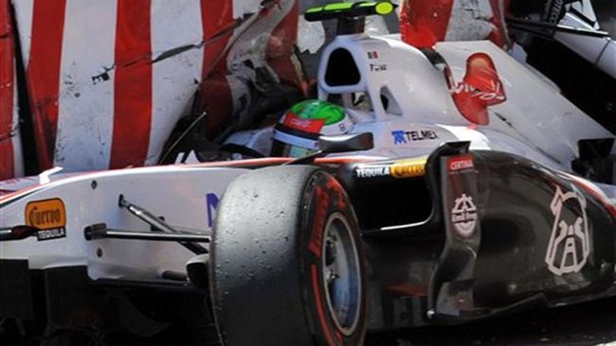 Sebastian Vettel logró su quinta pole de la temporada tras dominar el sábado una clasificación del Gran Premio de Mónaco que se vio empañada por diversos choques, el más serio de todos escenificado por el piloto mexicano Sergio Pérez. El alemán Vettel tuvo una mejor vuelta de 1 minuto, 13.556 segundos para certificar la sexta pole consecutiva de Red Bull. Jenson Button de McLaren largará segundo, seguido por el compañero de Vettel, Mark Webber. "Si me hubieran preguntado antes de la clasificación si me conformaba con el tercer puesto, probablemente habría dicho que sí", expresó Webber. Webber arrancó desde la pole en el Gran Premio de España de la semana pasada, mientras que Vettel arrancó desde la posición de honor en las cuatro carreras anteriores y ya tiene 41 puntos de ventaja sobre Lewis Hamilton, de McLaren, en la clasificación general. Vettel pretende su primer triunfo en Mónaco. "Tuve que esperar mucho tiempo para conseguir la pole, pero estoy complacido", dijo Vettel, el campeón más joven de la F1. Fernando Alonso, que dominó la última práctica del sábado, se clasificó cuarto en su Ferrari para completar la segunda fila de la parrilla. Pérez chocó su Sauber a la salida del túnel casi al final de la sesión. El mexicano se convirtió en el tercer piloto que escenificó una colisión el sábado a la salida del túnel y seguida de un derrape en la pista. "Es difícil mantener la atención así como la concentración cuando no se sabe que está ocurriendo", dijo Vettel. "Todos le deseamos lo mejor (a Pérez)". El accidente de Pérez acarreó gran dificultad a Hamilton, quien tenía pendiente el cronometraje de una vuelta y sus neumáticos perdieron temperatura porque tuvo una espera de casi 40 minutos para que se reanudara la clasificación. El campeón de la Fórmula Uno de 2008 arrancará el domingo en séptimo lugar, una posición desagradable para el piloto inglés debido a que había sido el más rápido en las dos primeras sesiones de clasificación. Pérez corría por primera vez en la tercera clasificación pero perdió el control de su bólido cuando estaba a punto de salir del túnel. La parte delantera de su bólido patinó a la derecha y se estrelló contra la barrera del túnel, el vehículo hizo un trompo y salió contra una barrera de neumáticos en el circuito. En 2003, Button tuvo una colisión similar en el túnel. "Sé lo mucho que duele (un choque), esperemos que (Pérez) esté bien", dijo Button. Un equipo médico se dirigió a toda prisa hacia el vehículo de Pérez y el automóvil fue cubierto con una manta gigante. Después de que Pérez fuera retirado para recibir atención se hizo lo mismo con el bólido abollado. El oficial del equipo Sauber, Hanspeter Brack, dijo a la prensa: "Sergio está consciente y hablando". Señaló que fue llevado a un hospital para ser examinado. El piloto de Mercedes, Nico Rosberg, y Vitantonio Liuzzi, de Hispania, resultaron ilesos en las colisiones previas a la de Pérez durante las prácticas del sábado. Alonso tuvo el tiempo más veloz en la tercera y última sesión de práctica de la mañana, después de que registrara el tiempo más veloz en la segunda práctica del jueves, lo cual había alentado el optimismo de que Ferrari pudiera lograr en Mónaco su primera victoria de la temporada. Alonso, subcampeón de la F1 en 2010, tiene desventaja de 67 puntos y necesita lograr el domingo una buena actuación desde la segunda fila para poner algún tipo de presión a Vettel. El mejor lugar de Alonso esta temporada fue el tercero en Turquía. En una tarde decepcionante para Renault, Vitaly Petrov y Nick Heidfeld quedaron fuera de la tercera sesión de clasificación debido a un problema de carga aerodinámica que hacia que sus coches carecieran de suficiente agarre en la pista.