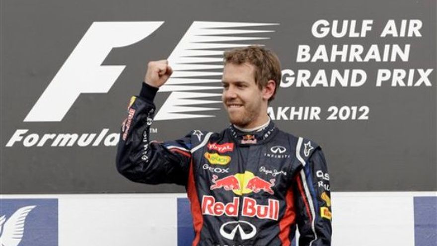 El dos veces campeón mundial Sebastian Vettel contuvo a Kimi Raikkonen y triunfó el domingo en el Gran Premio de Bahrein de la Fórmula Uno, en una competencia sin incidentes y en la primera victoria del alemán de la temporada. Vettel comenzó desde la pole por primera vez este año y fue líder de principio a fin. Raikkonen arrancó desde el undécimo lugar de la parrilla y terminó 3,3 segundos atrás, en su primer ascenso al podio desde que regresó al deporte esta temporada. Romain Grosjean, del equipo Lotus de Raikkonen, quedó en tercero seguido por Mark Webber, de la escudería Red Bull de Vettel. El mexicano Sergio Pérez terminó en el undécimo puesto. La competencia, que fue cancelada el año pasado, estuvo ensombrecida la mayor parte de esta semana por enfrentamientos entre policías antimotines y manifestantes opositores al gobierno en esta dividida nación. Sin embargo, la carrera se realizó sin contratiempos. Los puestos de seguridad se reforzaron antes de la carrera y el domingo no hubo señales de protestas cerca del circuito. "Fue una carrera increíble", dijo Vettel, quien alzó el puño cuando cruzaba la línea de meta. "Tuvimos un muy buen comienzo que fue crucial. Pude separarme del resto y resultó ser una gran ventaja", dijo el piloto alemán. Aunque fue un día histórico para Raikkonen después de ausentarse dos años de competencias de Fórmula Uno, dejó pasar varias oportunidades que le hubieran dado el triunfo. Retrocedió un sitio por una mala salida y luego batalló para dejar en segundo lugar a Grosjean. Una vez que estuvo en el segundo, el finlandés logró cerrar la brecha con Vettel a menos de un segundo después de 34 vueltas. Pero sólo hizo un intento serio para rebasar al alemán después de eso y fracasó. Penalizado. El siete veces campeón mundial Michael Schumacher fue castigado cinco lugares en la parrilla de salida del Gran Premio del domingo en Bahréin, por un cambio indebido de la caja de velocidades de su vehículo tras la sesión clasificatoria del día anterior. De acuerdo con las normas de la Fórmula Uno, las cajas de velocidades deben utilizarse en cinco carreras. La penalizacion constituye otro revés para el piloto de Mercedes, que había conseguido una mala posición de salida, en el lugar 17mo, debido a problemas mecánicos. El alemán arrancará ahora en el lugar 22do. El piloto venezolano Pastor Maldonado, de Williams, también fue castigado cinco lugares y arrancará en el puesto 21ro por el cambio de caja de velocidades en su vehículo tras las sesiones de práctica del viernes.