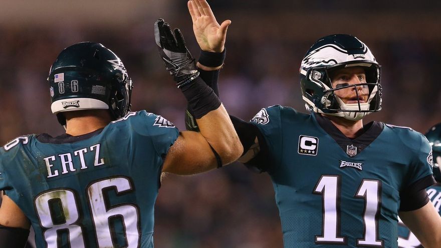 Wentz completó 27 de 39 pases para 306 yardas, le interceptaron un balón, no fue derribado y acabó con 98,9 de índice de pasador.