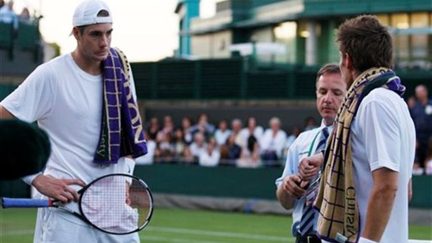 Ni siquiera el marcador pudo mantenerle el paso al maratónico partido de primera ronda entre John Isner y Nicolas Mahut en Wimbledon. El pizarrón electrónico que llevaba la anotación se apagó en un momento dado mientras el estadounidense Isner y el francés Mahut jugaban, jugaban y jugaban el partido más largo en la historia del tenis, hasta que las acciones fueron suspendidas el miércoles debido a la oscuridad cuando iban 59-59 en el quinto set. "Nunca volverá a suceder algo como esto. Jamás", dijo Isner en una entrevista con la televisión cuando aún estaba en la cancha. Los tenistas han estado jugando un total de exactamente 10 horas: siete horas y seis minutos tan sólo en la quinta manga, suficientes para romper el récord del partido más largo, que era de seis horas y 33 minutos, impuesto en el Abierto de Francia en el 2004. Nunca antes en la historia de Wimbledon, desde su primera edición en 1877, un partido de sencillos ni de dobles había durado más de 112 games, una marca impuesta en 1969. Isner y Mahut jugaron más games que esos tan sólo en su quinto set, y aún no determinan al vencedor, aunque el estadounidense estuvo cerca: tuvo cuatro match points, cuatro oportunidades de poner fin al encuentro, pero Mahut salvó cada una. El dramático partido atrajo a una multitud a la Cancha 18, y otros tenistas siguieron fascinados la transmisión televisiva. "Prácticamente me he quedado sin palabras viendo esto", afirmó el suizo Roger Federer. "Está más allá de cualquier cosa que haya visto y me pudiera imaginar jamás. No sé cómo se sentirán sus cuerpos al día siguiente, la semana siguiente, el mes siguiente. Este es un tenis increíble. El que hayan servido los saques as que han servido y permanezcan con la mente concentrada allí es un esfuerzo heróico". El tablero electrónico se quedó atorado en 47-47, cuando el marcador ya iba 48-48, y luego se apagó. Aun así los tenistas se mantuvieron en juego. Todas las cifras han sido sorprendentes: jugaron 881 puntos, 612 de ellos en el quinto set. Isner hizo 98 saques as; Mahut, 95. Y por si fuera poco, todavía no terminan. Ninguno ha ganado. El partido tendrá que disputarse en un tercer día. "El simplemente es un campeón. Estamos luchando como nunca lo hicimos antes", afirmó Mahut. "Alguien tiene que ganar, así que regresaremos mañana y veremos quién gana el partido". Poco después de las 9 de la noche, Mahut e Isner se acercaron a la red para preguntarle a un oficial del torneo si debían seguir jugando. "Quiero jugar", dijo el francés, "pero no puedo ver".