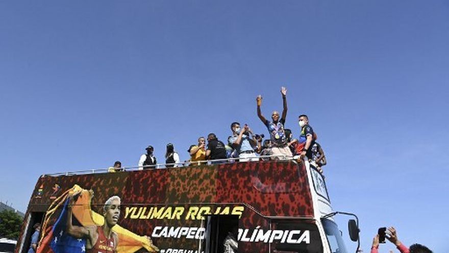 "Este es el principio", aseguró en Venezuela antes de subir a un omnibus descubierto rotulado con el texto: "Yulimar Rojas, campeona olímpica, orgullo venezolano" y una foto de ella con la bandera nacional tras la victoria en Japón.