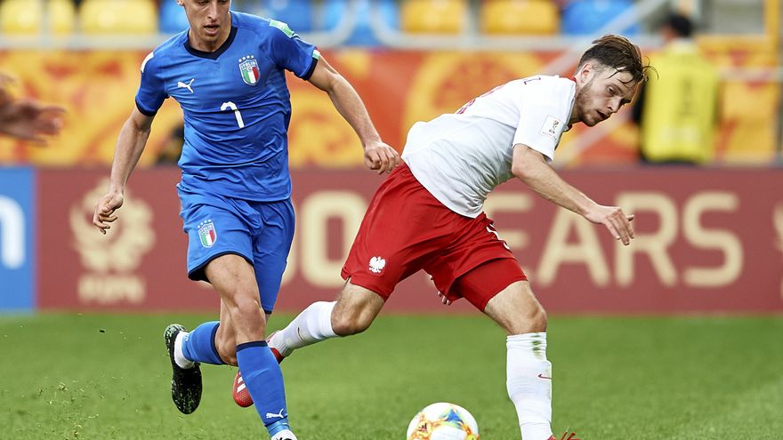 Un gol de penal en la primera parte de Andrea Pinamonti bastó a la selección de Italia para derrotar este domingo a su similar de Polonia (1-0), anfitriona del torneo, en octavos de final del Mundial Sub-20.