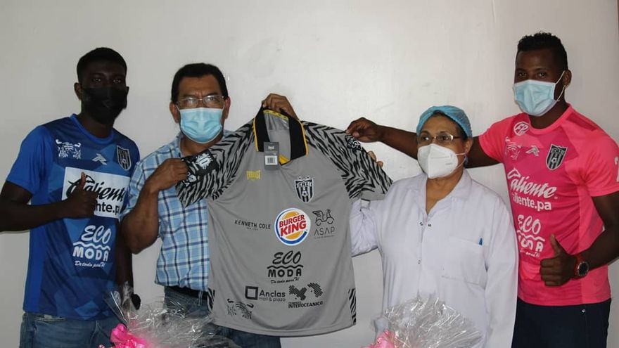 Los jugadores Dionisio Bernal y Martín Morán hicieron entrega de las canastillas al equipo de enfermeras y a Emilio Medianero, jefe de Provisiones del hospital. También, en gesto de agradecimiento, se entregó una camiseta del actual campeón del fútbol panameño a Medianero.