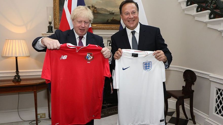 Dentro de la apretada agenda de trabajo, el mandatario de nuestro país se reunió con el Secretario de Estado del Reino Unido Boris Johnson donde aprovecharon para realizar un intercambio de camiseta, esto debido al Mundial de fútbol donde las selecciones de Inglaterra y Panamá comparten el grupo G.