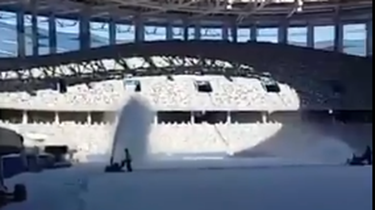 Actualmente el estadio de Nizhni Nóvgorod, se encuentra cubierto de nieve. En este estadio Panamá jugará contra Inglaterra su segundo partido de la Copa Mundial de fútbol.