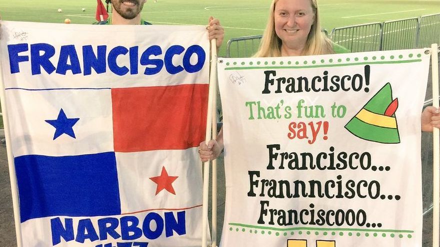 Heather Stewart, quien sigue de cerca al Seattle Sounders sorprendió al panameño Francisco Narbón con una pancarta y un refresco de cola con su nombre, "Francisco".