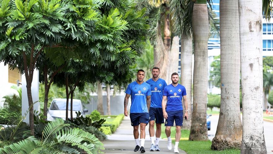 Jugadores de Irlanda del Norte, pudieron salir a caminar este domingo por los alrededores de su hotel en Costa del Este.