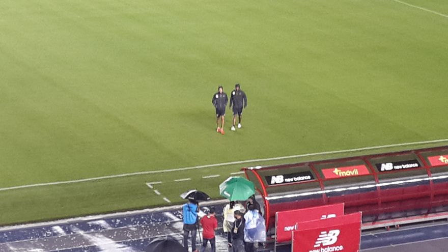 Tras la llegada de la Selección de Panamá al Estadio Rommel Fernández para afrontar el partido ante Costa Rica, Blas Pérez y Felipe Baloy caminaron por el césped del coliseo para conocer su condición, luego de un día total de lluvia.