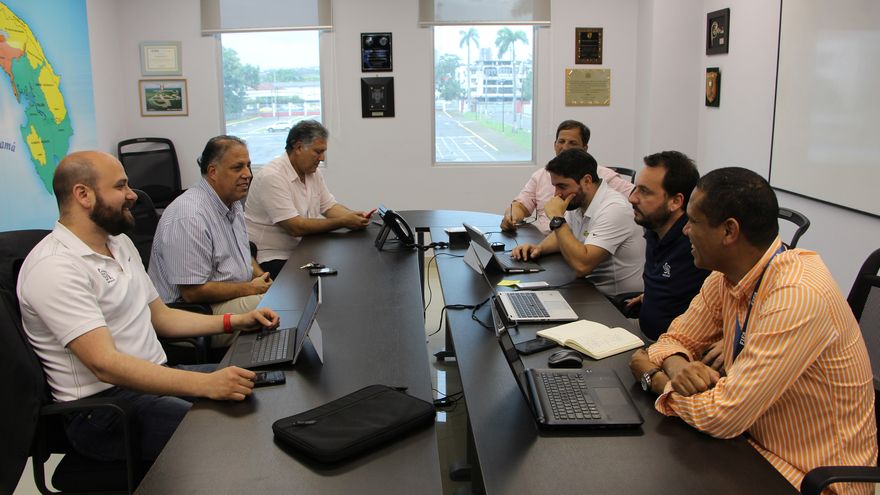 Los visitantes sostuvieron una reunión previa a la inspección con Pedro Chaluja, presidente de la FEPAFUT, quien estuvo en compañía del vicepresidente, Ramón Cardoze, y el secretario general, Jorge Aued; igualmente estuvo presente Rolando González, subdirector general de PANDEPORTES.