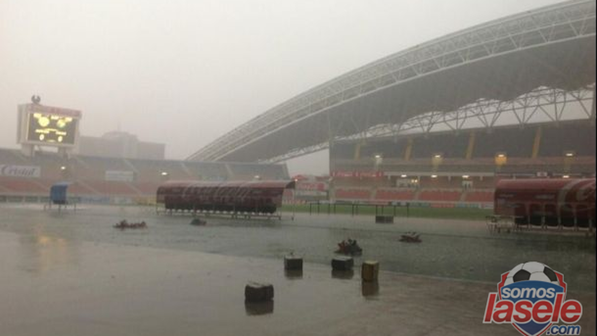 A poco para que inicie el partido la lluvia que cayó fuertemente y que intermitente vuelve ya asegura que el terreno estará bien mojado.