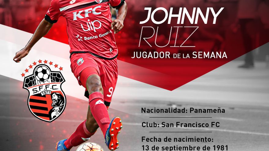 La Liga Panameña de Fútbol ha elegido al delantero del San Francisco FC, Johnny Ruiz, como el jugador más sobresaliente de la octava jornada del Torneo Apertura 2016.