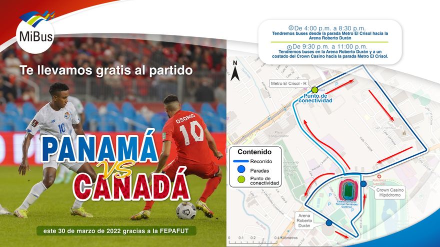 Para este miércoles 30 de marzo la empresa MiBus estará ofreciendo el servicio de transporte gratuito hacia el estadio Rommel Fernández Gutiérrez para los fanáticos que asistan al partido Panamá vs Canadá.