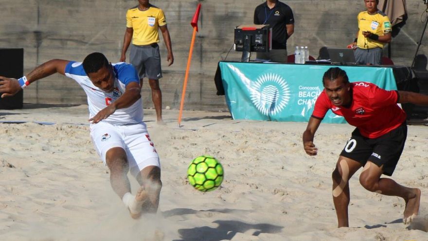 Panamá aseguró el primer lugar del Grupo B del Premundial de Fútbol Playa de Concacaf con una victoria sobre Trinidad y Tobago, 4 goles por 3, en la última fecha de la fase regular del certamen cuya sede es Puerto Vallarta, México.