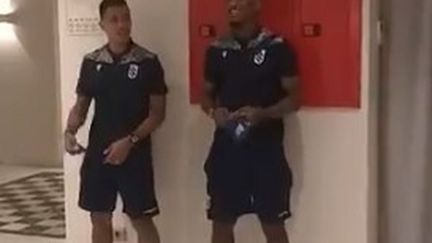 Los panameños Jorge Gutiérrez y Alejandro Ferrera, fueron víctimas de esa bienvenida y en esta oportunidad les tocó cantar y bailar frente a sus nuevos compañeros de club.